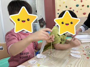 こうやったらどうなるかな?と考えながら手を動かしたり、美味しそうなスイーツに見立てながら遊ぶ姿も見られました。