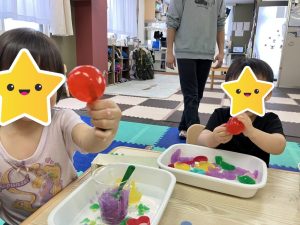 綺麗な色とつるんとした感触は、遊んでいてとても気持ちがいいようで、みんなとっても良い表情で「楽しい✨」「これ大好き🥰」という嬉しいコメントがたくさん聞かれました![]()