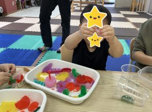 カラフルな寒天遊びは、毎回子ども達に大人気の遊びです![]()