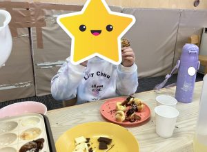 みんなに目を瞑ってもらい、「正直に答えて下さい。味見で先に食べた人✋️」と聞くと、素直に全員手を挙げていました☺️笑