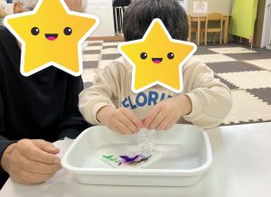 この日は午前と午後、違うやり方で染め紙に挑戦しました🎨