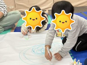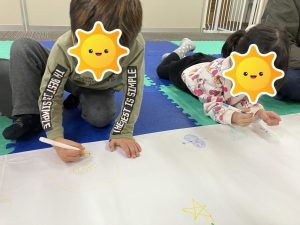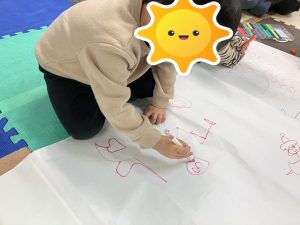 模造紙を繋げて大きな紙にお絵描きをしました✏
