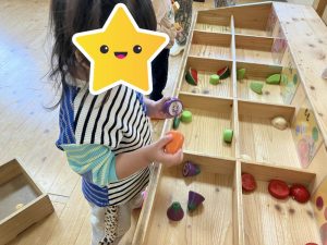 たくさんのおままごとの玩具で遊んだお友達は、種類別に分けてお片付けすることをがんばっていました💮