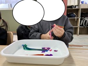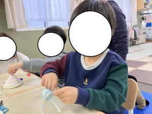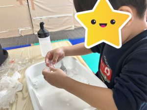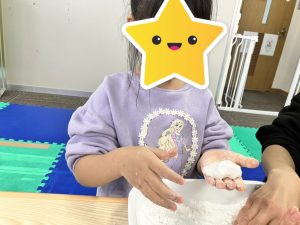 ギュッと握って固めたのに、手のひらにのせるとドロドロ~っと溶けていくような感覚がとっても面白く、何度も繰り返し試していたみんなでした