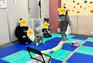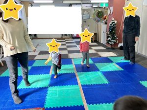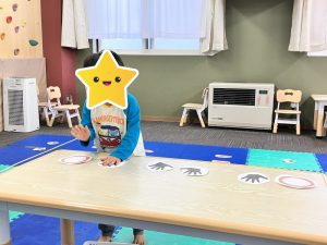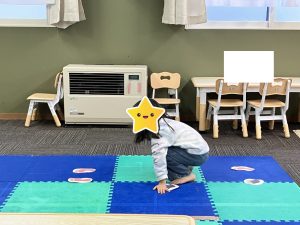 気持ちだけが先走ってしまうと、貼ってあるマークが右手(足)なのか左手(足)なのか分からなくなって混乱してしまう姿がありましたが、スタッフの「ゆっくりでいいよ!」「もう一度よく見てみて!」等の声がけで、目の前のマークをしっかりと確認しながら進んでくれていました✨