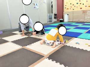 ●くま歩き→ハイハイから膝をあげ、お尻を高くして歩く。