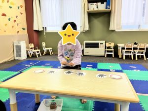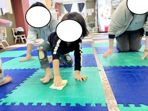 玩具をスポンジと手でしっかりと掴みながら四つん這いになって移動してもらうので、少し難易度が高かったのですが💦しっかりと運ぶことができていました🌈