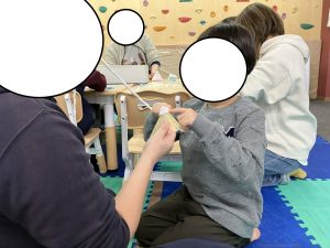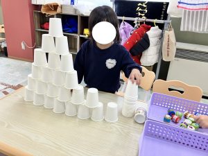 何かを積み上げる作業は、手と目の協応、力加減、バランス力、慎重さ等の様々な力を使います💪
