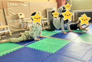 「ブーン」と本物の車になりきって遊ぶ子もいて、楽しみながら体幹トレーニングができました🥰