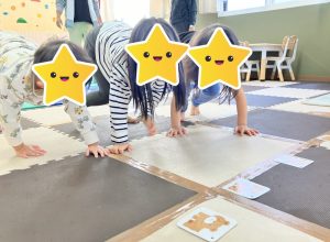 頑張ってゴールまでたどり着くと、ゴールにある動物カードをゲットできます✨みんな動物カードを全部集めたくて、ちょっぴり疲れる動きも頑張って挑戦していました💮