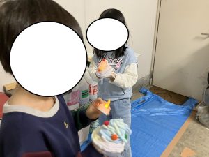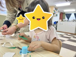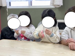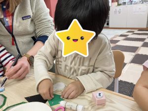 作った飾りと一緒にビーズなどの飾りを付けて完成です「うわ~かわいい💕」と嬉しそうなみんなの表情にとっても嬉しい気持ちになりました(^^♪