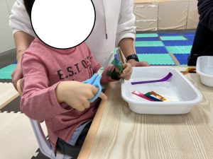 小さい子は大人の人に手伝って貰いながら、頑張ってはさみをパクパクと動かしていました😊