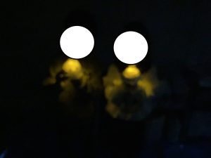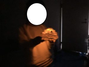 車庫に移動し携帯のライトをつけてから電気を消し、携帯のライトにクリスマスリースをかざすと壁や天井にとってもきれいな模様が✨