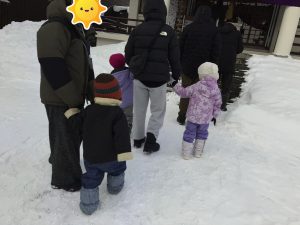 前回、午前の子は雪山まで辿り着けませんでしたが、今回はルートを変えてみんなで出発です🏃♂️