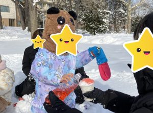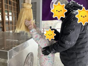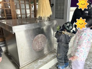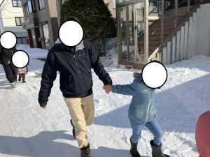 近くにある苗穂神社まで歩いて行きましたが、「疲れた~」「抱っこ~」等の声は聞こえず、スタッフに「滑るから気をつけてね😊」と声を掛けてくれたり😂