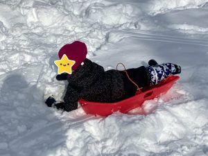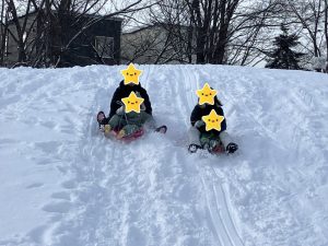 雪山を繰り返し登るのは大人でも疲れますが、みんなソリ滑りが楽しくて楽しくて、労を惜しまず何度も登っていて逞しさを感じました☺️