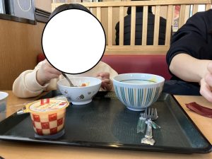 外食する経験を少しずつ重ねる中で、”どんなお約束があるかな?”と考えたり、あいうえおのスタッフ以外の大人と関わる機会を大切にしていけたらと思います(^○^)