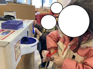 と、流れの説明をするとみんなしっかりと聞いてくれていて、お店屋さんにつくと、スタッフに「しーだよ!」と教えてくれるほどでした💫