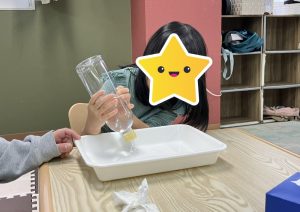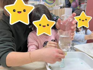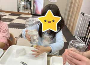 今日は、こども達の身近にある”水”という材料を使って実験遊びをしました。