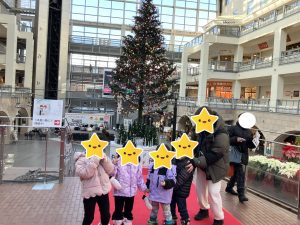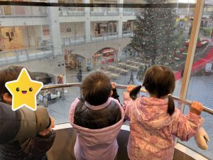 エレベーターから見えた大きなツリーに大興奮していました😊近くに行き下から眺めたり、離れて見たりと色々な角度から楽しんでいた様子でした🎄