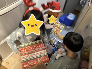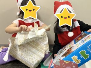 そしてお待ちかねのサンタさんからのプレゼント🎁✨あいうえおにサンタさんが来たみたい😳!!と伝えると、「やったぁー😍❣️」と皆んな大急ぎでプレゼント🎁を探しに行っていました😊♡ 皆んなで開封した後は順番に使ったり、譲り合いながら楽しく遊びました♡✨