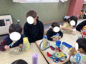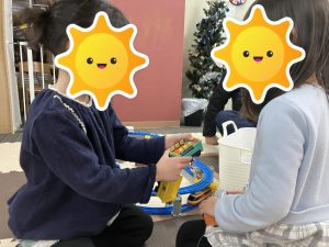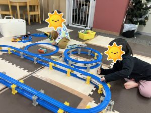 午後のおともだちはオセロにも挑戦していたり、普段プラレールではあまり遊ばないおともだちも、「やってみたい(^○^)/」と言い、おともだちを誘って遊んでいたりと、言葉でのやり取りが多く見られました👏