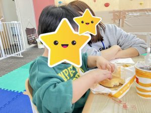 おもちゃは食べ終わってから遊ぼう!というお約束もし、集中して食べ進めるみんなでした🍹🍟✨