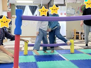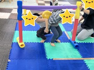 ゲームは少しずつレベルアップ🔥コースの終盤には跨ぐバーとくぐるバーもあり、1人だけで頑張っても成功は出来ず、相手の様子を見たり感じたりしながら“どうやったら上手く出来るのか?”を考え、頑張ってタイミングを合わせながら取り組んでくれていました😊✨