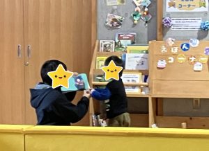 果物・野菜コーナーでは、小さな子に先に譲ってあげたり、同じ玩具で遊びたい時には「い~れ~て(^○^)」と声を掛けたり、順番に仲良く遊ぶことが出来ていました✨