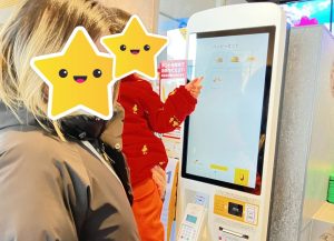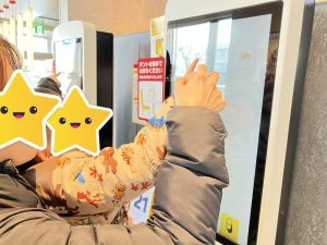 お店に着くと大きなタッチパネルがあり、写真を見ながらそれぞれ選んで注文をしました☝
