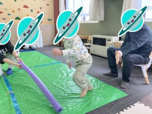 陣地から少しはみ出てしまうお友達もいましたが、よく見ながらジャンプで避けることができ、みんな楽しみながら体を動かしていました❤️