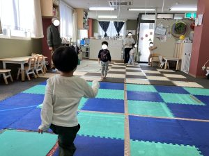 2回目からは子ども達にも鬼をしてもらいましたが、鬼になってもニコニコ👍「動いたよ!」と言われてもニコニコ☺️