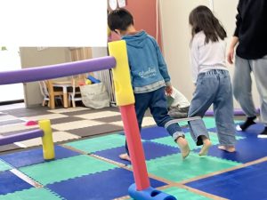 ゲームは少しずつレベルアップ🔥コースの終盤には跨ぐバーとくぐるバーもあり、1人だけで頑張っても成功は出来ず、相手の様子を見たり感じたりしながら“どうやったら上手く出来るのか?”を考え、頑張ってタイミングを合わせながら取り組んでくれていました😊✨