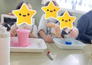 混ぜてみたらどうなるかな?さらに重曹や酢を足してみたらどうなるかな?と、試行錯誤をしながら実践する姿が見られました![]()
