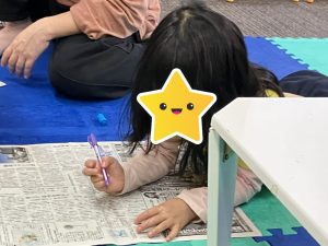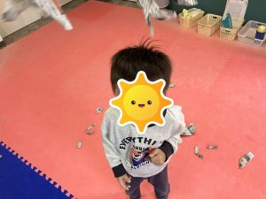 最後まで皆んな新聞紙と睨めっこをし、活動後にはあいうえおの壁などに書いてあるひらがなを見つけ、「ここにも“の”があるー!」と、文字を見つけたり読んだりすることを楽しんでくれていました😊