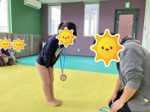 活動後は、あいうえおには無いおもちゃでも遊ばせてもらい、最後には“ウェルネスに遊びに来てくれてありがとう”の金メダル🎖️もいただきました😊‼️