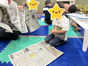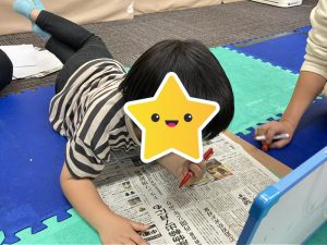 ひらがなに未だ気持ちが向かない子は、☀️マークはどこだ?👓かけたおじさんは?など、その子なりの活動の取り組み方で、一生懸命に新聞と向き合いながら探してくれました🥹‼️