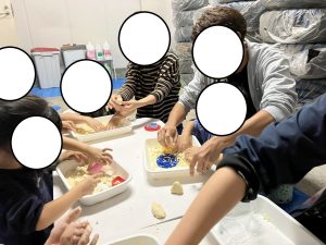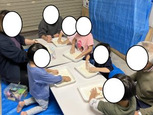 最初に小麦粉だけ渡し、「おにぎり作ってみて!」と伝えると、「パラパラして全然固まらないよ💦」と気づきました👀